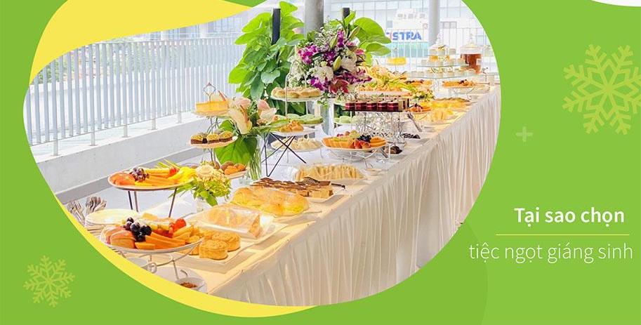 Khi sử dụng dịch vụ tiệc ngọt giáng sinh, khách hàng sẽ nhận được một buổi tiệc ngọt với các món bánh, trái cây được trang trí với những nét đặc trưng cùng tông màu trắng và đỏ của một buổi lễ giáng sinh ấm áp.